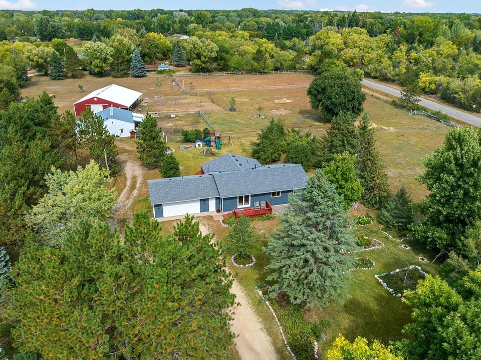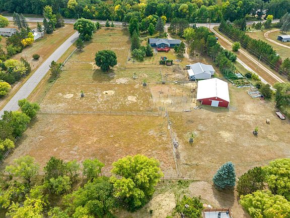 This must see 1985 ranch rambler is situated on a 5 acre hobby farm with 2 barns, 5 fenced pastures, 3 paddocks and 4 stalls. Ideal for horse and animal lovers! Main level features 3 bedrooms, 2 baths, kitchen, dining room, additional dining room nook and living room. Attached 2 stall garage with recently insulated breezeway / mudroom for entrance to home. Third garage stall is detached. Owners have nurtured many plants, trees and flower throughout the property. Basement is unfinished leaving lots of space to grow and design rooms to your lifestyle. Barns are 40' x 60' and 30' x 40' both with water and electrical service. Horse trails at nearby Sand Dunes State Forest and Lake Maria State Park. Many upgrades and improvements have been made in the last 5 years. Conveniently located between the Twin Cities and St. Cloud.