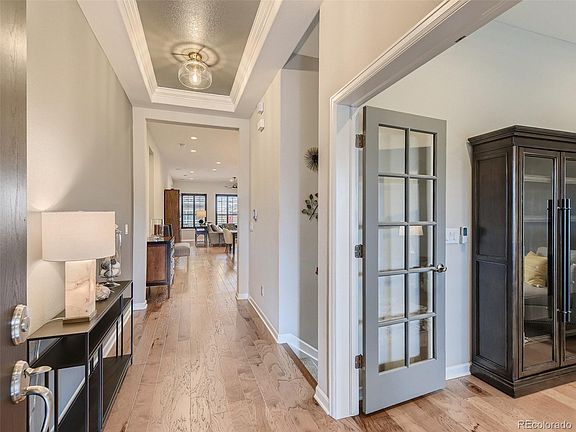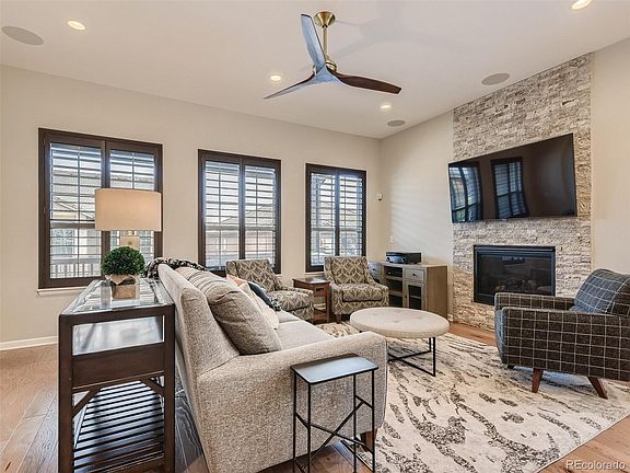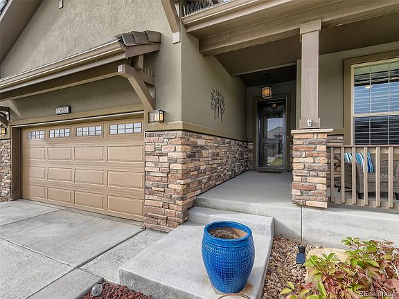 Buyers got cold feet - back on the Market! Toll Brothers Fairplay Model with extended home and garage in the highly sought after Anthem Ranch 55+ community . Come see this immaculate highly upgraded gorgeous home. A plethora of upgrades including extended engineered hardwood flooring, tons of extra lights and upgraded lighting, storm security door, and quartz counters throughout. A chefs dream with gourmet kitchen with stainless hood, upgraded Kitchenaid appliances, extended island with cabinets on both sides and pendant lights, extra large deep pantry, eat in breakfast bar with stools, under and over cabinets lights surrounding sparkling white cabinets. A large office with french doors welcomes you as you enter the home, tall ceilings giving a large home feel, ceiling fans speakers in the spacious living room with cozy gas fireplace surround by designer stacked stone. Plantation shutters throughout the home give it a luxurious feel along with designer tiled bathrooms, European Framless Primary shower, lighted mirrors, double sinks and vanities and 2 separate closets. Enjoy the Colorado Sunsets on your own deck with mountain views, private yard and deck shade for privacy. The large mudroom affords you the extra space for your belongings with built in bench, extra cabinets, Stainless Steel front loader washer and dryer and hanging area for coats. The 2nd bedroom has a built in Murphy bed and can also be used a game room or flex room. The finished basement is a bonus with a 3rd bedroom, full bath and flex room/exercise room or craft room. The owner has taken meticulous care of this home, added a concrete walkway and garage service door. The grill and bar stools in the kitchen are included. 30,000 sq ft rec center, over 130 clubs, over 48 miles of trails, pickleball, tennis and many planned activities. Close to shopping, restaurants, I-25, Denver and Boulder. This one won’t last.