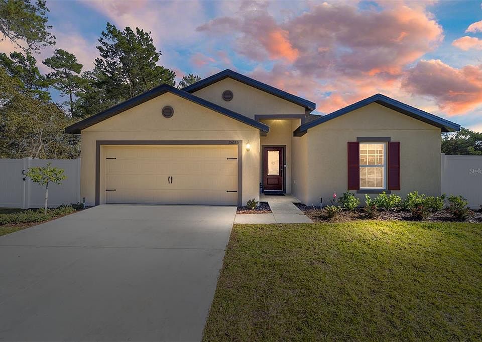 You will love the expansive living space to be found in this almost new 5 bedroom/3 bath Capri floor plan with upgrades around every corner. This beautiful home offers a covered entryway with a glass inset front door opening to the spacious living area with a desirable neutral color palette featuring luxury vinyl plank flooring, high ceilings, and recessed lighting. Stunningly equipped chef's kitchen with upgraded energy-efficient appliances, granite countertops, a large island with bar-height seating for casual dining, and a pantry for all of your storage needs. The owner's suite comes equipped with an oversized walk-in closet and an en suite bath with a double-sink vanity and luxurious step-in shower. Fantastic extras to appreciate include four guest bedrooms, an inside laundry room, vinyl privacy fencing, a shed for extra storage space, and a screened-in Florida room ready for relaxing or outdoor entertaining. This home is located in the Marion Oaks community offering a community center, playground, tennis courts, workout facility, library, grocery & other local businesses with no HOA fees. This community is also conveniently located a short distance from the Rainbow River for tubing, kayaking, and boating and only 30 minutes from the World Equestrian Center.