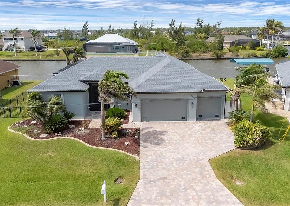 Waterfront Paradise with Gulf Access – Impressive 4-Bedroom Pool Home (some photos virtually staged) Step into your waterfront retreat where remarkable views and well-appointed details welcome you. Located on the wide Tecumseh Waterway with 108 feet of cement seawall, this impressive home offers access to the Gulf of Mexico—perfect for boating/fishing enthusiasts. As you arrive through the screened front entry, you're greeted by high ceilings, an open floor plan, an abundance of natural light and a great view of the Tecumseh Waterway. The spacious sitting room/living room offers comfortable flow to the kitchen, extended dining area and family room, while the den/office provides a private space behind glass French doors. The dining area creates multiple options for entertaining and is anchored by a gourmet kitchen featuring newer appliances, tall cabinetry, a pantry, and a large island with plenty of seating. The family room provides comfortable space to enjoy TV, entertain or kick back and relax. The large primary suite is a sanctuary with lanai access, two walk-in closets, and a spa-like en-suite bath featuring a jetted soaking tub, tiled, walk-in shower, and unique dual vanities/dual water closets. Three additional bedrooms and guest bathrooms ensure ample space for guests or family - especially given the unique split floor plan of this home providing ample privacy for all. Step outside to an expansive lanai, where a heated saltwater pool, mini outdoor kitchen, and outdoor shower create a private oasis and a view of passing boats and visiting birds. With two separate lanai areas, you can relax and take in stunning sunset views with the western exposure. A travertine tile walkway wraps around the home. The dog run has plenty of space for your pet to exercise safely, and the mature landscaped yard is maintained by an irrigation system sourced from the canal. Additional features include: a newer roof; newer HVAC; newer whole-house, on-demand Generac generator and newer pool cage, plus accordion and roll-down shutters for peace of mind. The 3-car garage boasts storage cabinetry, and the paver driveway and walkway add to the home's curb appeal. Located on a street of beautiful homes with a welcoming community that enjoys block parties, this home is the perfect blend of elegance, comfort, and Florida waterfront living. Don’t miss the opportunity to own this exceptional property—schedule your private showing today!