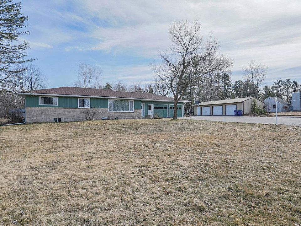 Country living just outside of town! This 3 bedroom ranch home sits on 1.12 acres and features an attached 2-car garage, detached oversized 1-car garage, plus an outbuilding (26'X45') with 3 overhead doors (6+ car capacity & plenty of space for boats, campers, you name it... with a large driveway & additional paved parking area). The home features a new roof (2023) and two new holding tanks - 2,000 gallons each (2023), and a new water heater (2023). Inside features a spacious layout with updated vinyl plank flooring throughout the living area, dining, kitchen, hallways and bathrooms. Contemporary accents, fixtures and fresh paint & wallpaper accents throughout. Painted grey kitchen cabinets with updated countertops, backsplash, updated stainless appliances (included) and a huge walk-in pantry. Updated carpeting in the bedrooms (large bedrooms - 14'X13', 12'X11' and 12'X11'), along with updated bathrooms with modern vanities - updates were completed by licensed contractors.,Finished lower level rec room (29'X16), along with a versatile bonus room (12'X13') and another 1/4 bath - only a shower stall. Plenty of storage space in the unfinished mechanical room / lower level laundry hookups (washer & dryer included). WPS natural gas electric and WPS natural gas service. Great location on the Northeast side of Wausau, walking distance from Wausau East High School, close to downtown Wausau and convenient access to Weston from Hwy-52 to Cty Road X. Schedule your showing today!