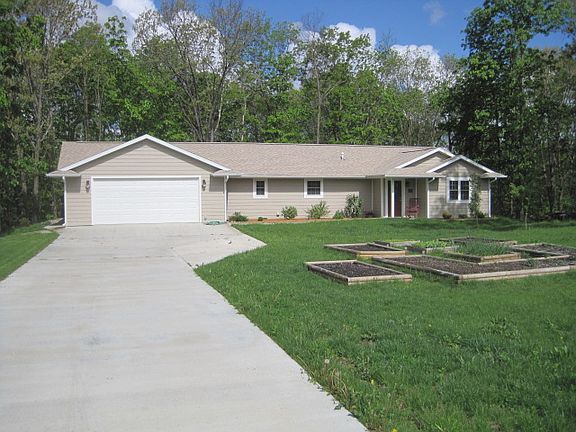Custom Ranch Home a Wooded Paradise This home is situated on a very private mostly wooded park-like setting. The home features 2 bedrooms and 2 bathrooms with 1,210 square feet of living space all on one level. It offers a gas fireplace that gives you an immediate coziness when entering the living area. The kitchen has custom hickory cabinets that perfectly ascent the tongue and grove cedar interior walls. A large master bedroom with master bath and spare room with an across the hall bath and main floor laundry make up the rest of the home. The garage attached to the house is 24 by 32 offering a perfect area to park cars, trucks, boats, and toys. A second detached garage is included in the property that is 26 by 36 with a ½ bathroom and 12 by 26 heated workshop area. This work or hobby shop is the perfect place for storage or in-home office area. Additional features of the home include concrete sidewalks both to and around the home and a concrete driveway. Several raised gardening beds and wonderful landscaping around the home with annual and perennial plants. All of this with turkeys and deer right out your back door. Also included in ownership of the home are deeded rights to Sundown Lake a 400+ acre private lake. The lake offers a private swimming beach, boat launch, and unlimited recreational potential. Boat, fish, swim and enjoy the privacy from this custom built Iowa home.