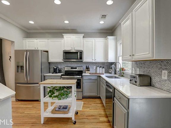 Benteen Park Beauty! Amazing opportunity to own before Boulevard Crossing Park Expansion and Grant Park Gateway elevate this fantastic neighborhood! A welcoming Front Porch invites you into a Flowing and Functional Floorplan. Hardwood Floors begin in a sun-soaked Family Room and extend through a Curved Archway into a Central Dining Room. Meals and memories come easy in the Bright, Open Kitchen freshly updated with NEW Stainless Steel Appliances, Quartz Countertops, and Custom Tile Backsplash. Two Main Level Bedrooms share a Renovated Hall Bathroom with Designer Fixtures. Upstairs, an Oversized Master Suite with Walk-In Closet offers the perfect place to unwind. Enjoy tree-lined views from the Private Sitting Area or Master Bathroom with Dual Vanity, Soaking Tub, and Separate Shower. Storage Space Galore! Fantastic Flex Bonus Room, Multiple Closets, Built-Ins, Attic Storage, and a Large Crawl Space offer a convenient home for everything. Embrace the outdoors with a Spacious Deck overlooking a Private, Fenced Backyard with Hardscaped Firepit. Fantastic Intown Location! Located at the edge of pristine East Village Park. Follow Elleby Rd to enjoy Tree-Lined Trails that back up to Benteen Park! Moments from all the Southside BeltLine Trail has to offer including Grant Park, Zoo Atlanta, and Locally Famous Shops and Restaurants like Patria Cocina, Buteco Coffee, Eventide Brewing, and more at The Beacon.