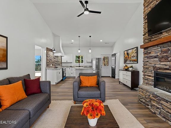 Brand new built barndo style home. Features 3 bedrooms, 2 bathrooms, open floor plan concept home. Main living area boasts floor to ceiling rock fireplace, kitchen includes island bar, granite countertops, pantry, farmhouse sink, and stainless steel appliances. Master bedroom has en-suite master bathroom with double vanity, LED lighted/heated mirror, title shower, and oversized master closet. Home is situated on 1.3ac partly cleared and boarded with woods offering privacy. Detached 24X30 2 car garage with extra storage. Property over looks breath taking views of the Great Smoky Mountains.