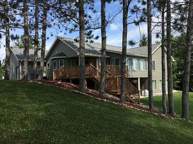 SUGAR SPRINGS Waterfront Home!!! This is one of the nicest waterfront homes available in the entire area. Open floor plan with vaulted ceilings in living/dining/kitchen area. Large master bedroom with master bath and walk-in closet. Nice size guest room with separate bath. Den or third bedroom also on main level. Large foyer. Ceramic floors in foyer, kitchen and bathrooms. Half bath and laundry area next to finished three plus car garage with workshop area. Walkout level has additional bedroom and bath, a second kitchen, breakfast area and huge family & recreation room. Lots of storage. Steel seawall. Large waterfront deck for entertaining. Suspended permanent dock. Sandy bottom frontage for swimming. New roof, siding and much more please call for most recent updates.