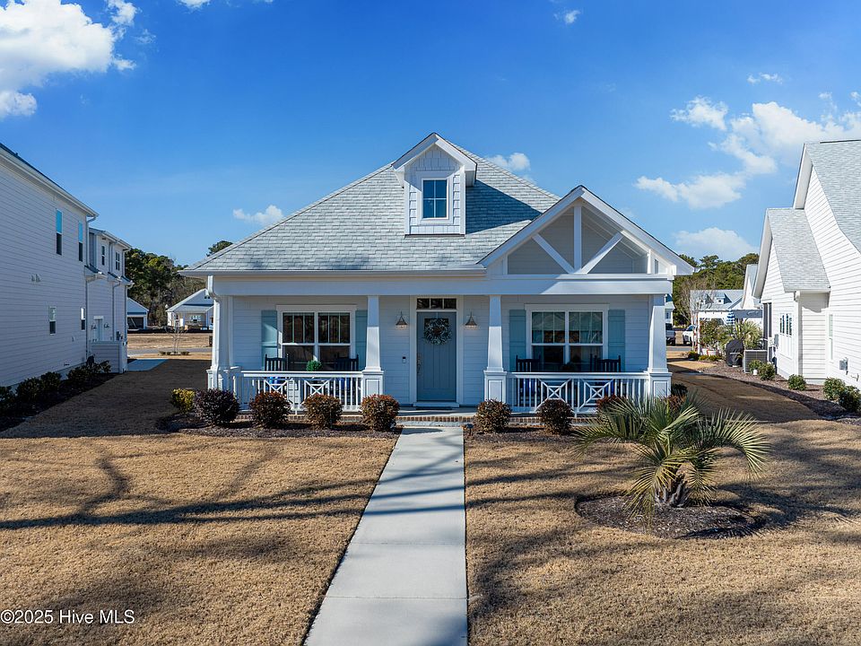 The charming rocking chair front porch provides a picturesque view of the expansive common space and tranquil pond, offering a peaceful setting to unwind and relax. Situated on a wide parcel, this home enjoys a prime location with easy access to Sunset Beach, ranked among the top 20 beaches in the world! Just a short golf cart ride away to the beach, shops, restaurants, and grocery store, making everyday conveniences effortlessly accessible.