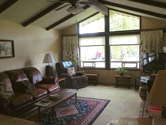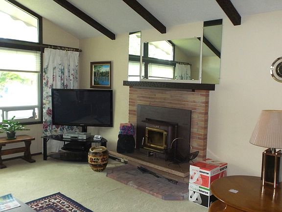 Beautifully landscaped yard, fenced in back with one deck off dining room and one off Master Suite. Home has been very well taken care of, needs some updating. Spacious LR has vaulted, beamed ceiling and woodstove. Kitchen has island and lots of storage. Attached 2 car garage.