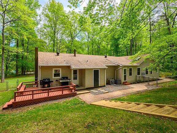 Conveniently located in a serene country setting but only 10-15 minutes from UVA Grounds, UVA Hospital, and 5th Street Station (Wegmans, The Alamo, Planet Fitness, & more), this 4-bed, 2.5-bath, 1,980-fin sq ft one level home sits beautifully on 2 partly wooded, private acres and features inviting mulched paths through the woods, raised cold frame garden beds, assorted hardwood trees, Hostas, and flowers abound, and more! Enjoy viewing deer, hummingbirds, songbirds, and other extensive wildlife through the front bay windows. Allow your pet to roam free in the fenced-in backyard and/or property-wide invisible fence and store your tools in the attached shed. Prepare meals in the eat-in kitchen, featuring an island, newly refinished cabinets, and stainless steel appliances, or grill out on the shaded back deck. Rest easy in the recently renovated primary suite, featuring a walk-in closet, backyard nature views, and a brand new ensuite primary bathroom with a free-standing soaker tub, custom vanity mirror with hidden storage, two sinks, and a spacious shower. With two living/family rooms to choose from, the options for entertaining are endless! Open House Sun 05/05 2-4PM!