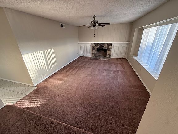 Cozy fireplaceGenerously sized backyardPrimary suiteTile flooring