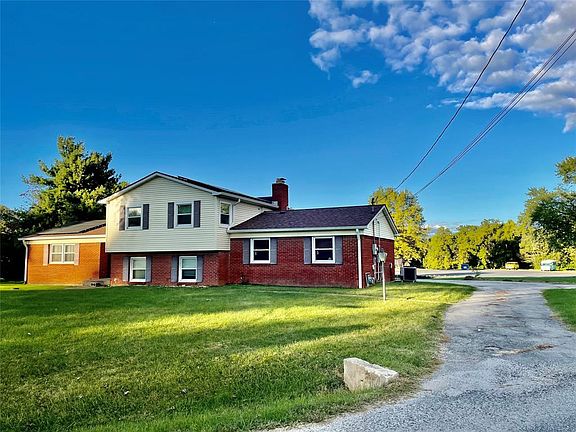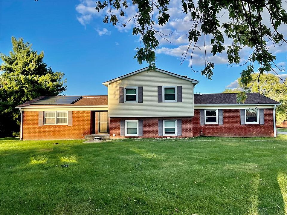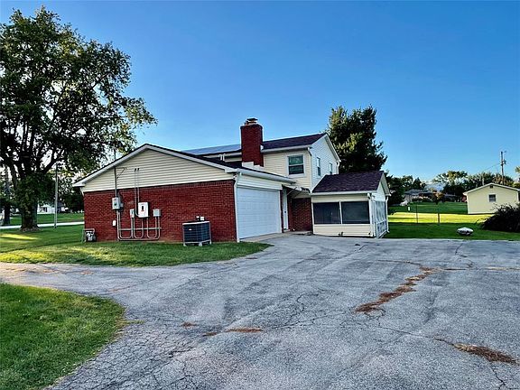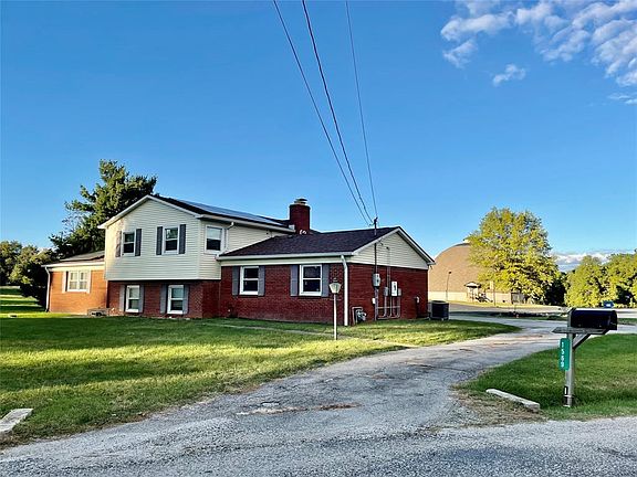 Nice Tri-level home on corner lot with circle paved driveway, sidewalks, attached 2 car garage. Home features solar panels that are 2 years old that power refrigerator, both sump pumps and garage outlet. Screened in 21x8 concrete back patio. Walk in to entry foyer L shaped living room/dining room combo. Kitchen has beautiful vinyl hardwood floors stepdown family room with decorative brick fireplace. 2 nd bedroom, laundry room and full bath is also on main level. Upstairs has Master suite, 1/2 bath, 3rd bedroom with original hardwood floor, 4th bed room and full bath. New paint throughout. Water softener stays, reverse osmosis on kitchen sink. Great price on this home.