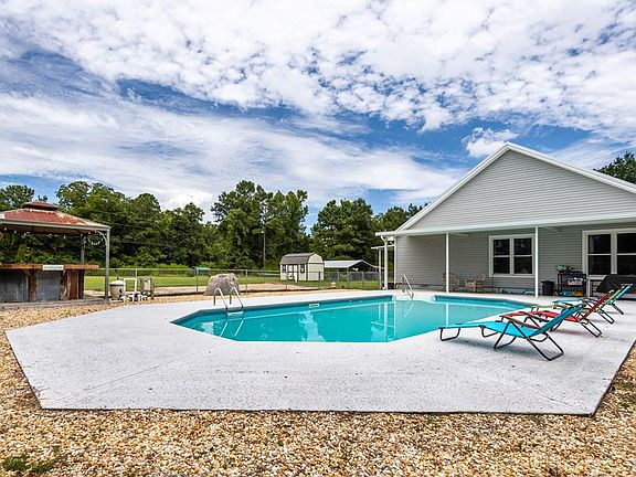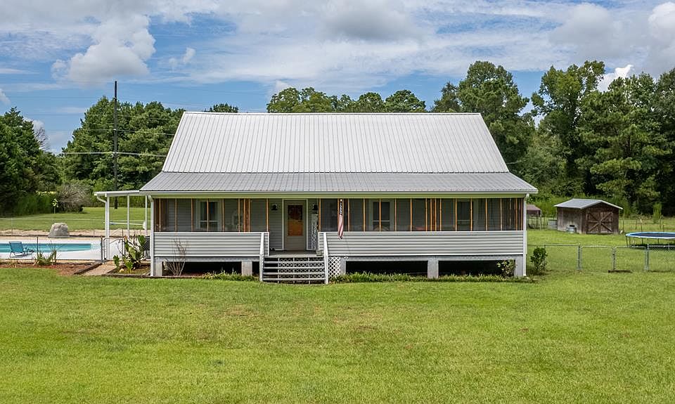 7.54 acres on a private lot zoned for West Lee County schools! This 2377 square foot, 4 bedroom 3 bath home features an open floor plan. There is a large bonus room or bedroom upstairs with a walk in closet and it's own bathroom. Heart of pine flooring throughout nearly the entire house as well as wood-plank ceilings in the living areas, bonus room, and master suite. The vaulted ceilings add to the spacious feel of the house. In-ground POOL is fenced off from the rest of the property and features a tiki bar and covered back porch which is great for entertaining guests. The front porch is screened in and spans the length of the home as you drive up the long gated driveway to come home. Also featured is a metal roof installed in 2017, a new HVAC installed in 2021 and a new pool filter installed in 2021. The property's exterior consists of a large Cypress tree windbreak for privacy, a 20x30 metal framed carport and a 10x16 shed. Call to see this one today! More pictures coming soon!
