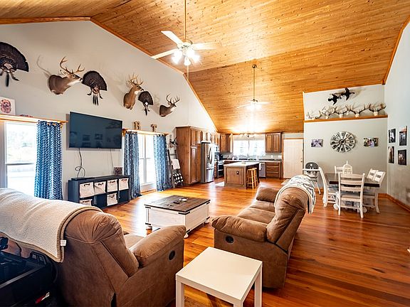 NESTLED IN A PRIVATE WOODED SETTING---- COUNTRY LIVING IN WEST LEE COUNTY JUST NORTH OF LEESBURG!!! 7.54 acres!!! SUPER OPEN FLOOR PLAN!!! This home features approximately 2,200+ sq ft of living space, 4 bedrooms and 3 full baths!!! You will LOVE this super OPEN floor plan! The family room is HUGE with gorgeous heart pine floors, a vaulted/wood ceiling and lots of windows for loads of natural light! The kitchen has been fully renovated--- NEW HEART PINE CABINETS, NEW STAINLESS APPLIANCES and NEW COUNTERTOPS! The master suite is OVERSIZED, also has a vaulted ceiling, hardwood flooring, and a private ensuite bath with a double vanity, jacuzzi and separate shower! Bedrooms 2 and 3 are both located downstairs. The BONUS ROOM (or 4th bedroom) is located upstairs and has it's own private bath! There is a separately fenced POOL area (the swimming pool is covered for winter). The exterior includes a nice screened porch, a covered patio area, a 20x30 carport and a 10x16 storage shed! Additional upgrades include a new METAL ROOF (2017), new HVAC unit (2021), new vinyl windows (2019), new pool filter (2021) and NEW super low maintenance vinyl siding (2020)! This is a RARE FIND IN LEE COUNTY-----