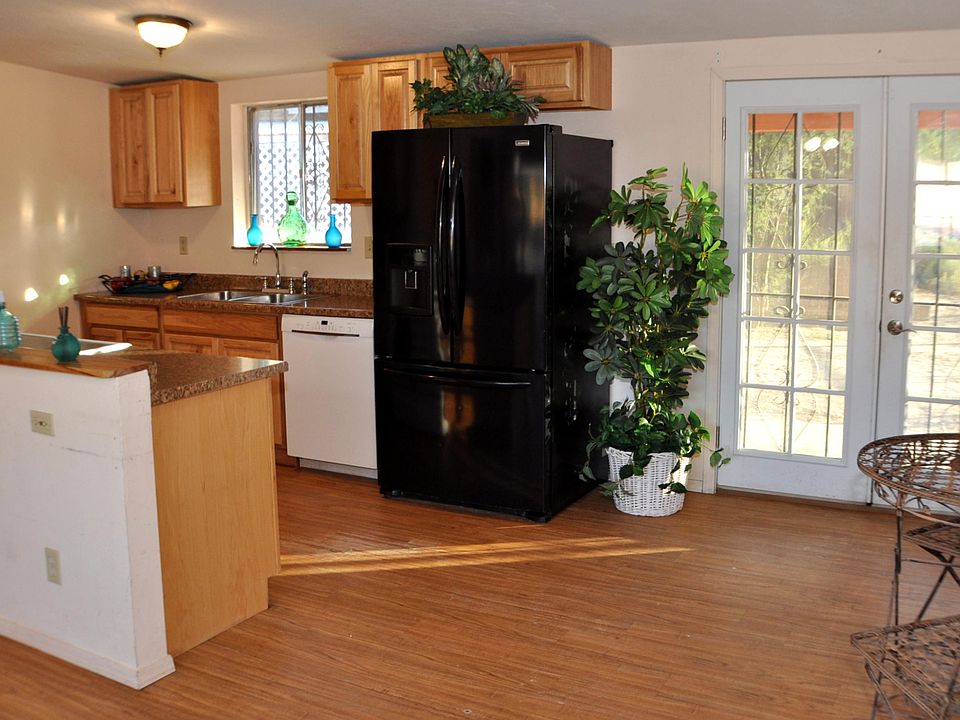 Great Central home. Priced below market, listed as fix-up but a Very clean & well cared for fix-up. Cash or Conventional. This one owner home just needs some sweat equity to make this your home. The home is listed as 3 bedrooms & 2 bathrooms. Current floorplan has some of the bedroom walls opened up. With acceptable offer the Seller will reinstall walls back to 3 BR's if requested. Many in area have enclosed carport. Newer kitchen cabinets, new counter tops & faucet. Mountain views, built-in cabinets & shelving, French doors, chain link fencing w/ 2 vehicle gates. 6098 sq ft lot, solid block construction, large detached structure in back would be great for woodworker, mechanic, storage. Privacy on a cul-de-sac next to City land, Flowing Wells schools. This property is being offered AS-IS.