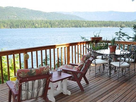 Terrific 2-bedroom + loft, 2-bath lakefront cabin on pristine Lake Wenatchee! Exceptional waterfront setting with a private dock, large open deck for relaxing and entertaining, small year-round creek, and superb privacy! The open great room features a 2-story rock fireplace, cedar walls, and fabulous views of the lake and mountains.