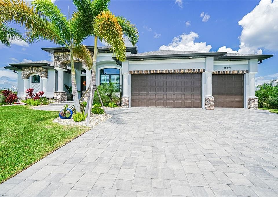 Why wait to build? Start enjoying a completed custom home now! This gorgeous Gulf Reef home has 3 bedrooms, 2 baths and a 3 car garage. Highlights include 12' 8' ceilings in the kitchen, great room and dining room. The kitchen has wood cabinets, quartz countertops, and an oversized island. This home has a pool with custom water features, a large sun shelf and an expansive lanai with fabric roll down shutters. The home sits on a double lot which is completely fenced, which is a great feature for dog lovers. South Gulf Cove is a boating community conveniently located to shopping, eclectic dining, and the beautiful beaches of Boca Grande. This amazing home definitely won't last! Come be a part of the sportsmans paradise community!