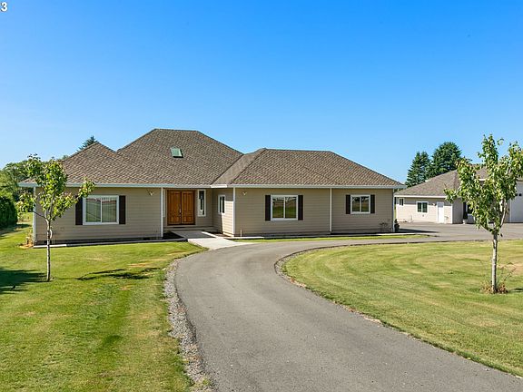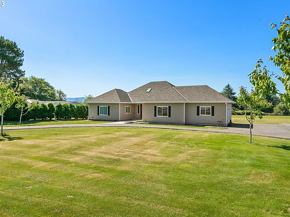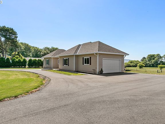 Thoughtfully designed and meticulously maintained 2016 custom home on a rare oversized 2.81 level lot on the Harbor bench in Brookings! Unique features throughout the home include arched doorways, custom-crafted myrtle wood cabinets/countertops, glass bowl vessels sinks and high coffered ceilings with crown molding. New plush carpet in the living area and neutral colors offer a warm comfortable space to relax. Three oversized bedrooms, two of which are primaries each with en-suite baths and oversized walk-in closets. The main primary bedroom overlooks the lush lawn and the beautiful Harbor hills and has a sliding glass door out to the back patio. Additional full bathroom for the third bedroom and guests. Oversized 34x40 shop with 3 roll-up doors (one 16'), high ceilings, and concrete floor is perfect for RV/boat storage and for creating the shop of your dreams! Attached ADU (auxiliary dwelling unit) offers a separate private space for guests or family members to stay. Or, make it a game room, exercise room, or man-cave! The possibilities are endless! The unit offers a complete kitchen with full sized refrigerator and stove and the full bath has a tile walk-in shower and custom myrtle wood cabinets. Located on the Harbor bench, this property offers some of the best soil for gardening! Perfect for growing your own food, or for a mini-ranch for horses and livestock with the level acreage, or for just spreading out and enjoying all the elbow-room! Everything about this property is over-sized and custom! A must-see to appreciate the thoughtful craftsmanship put into this exquisite home! Bring the animals, RVs and family and start living your life in comfort! All appliances and white vinyl fencing (enough for the front of the lot) is included. Ask to see the virtual tour!