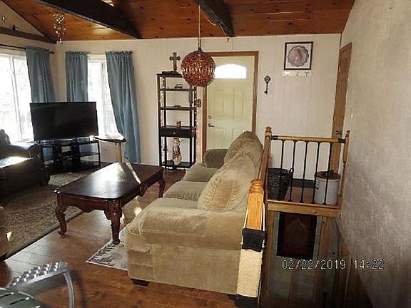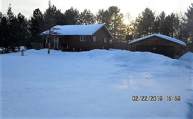 Set way back off the road and snuggled in among the Pines on 5.5 acres. 2 Bedroom, 1 bath Log Sided ranch with walk-out lower level. Open concept with tongue and groove vaulted ceiling. Wrap around deck allows relaxation with a view and privacy. 9 Ft. ceiling in partially studded lower level allows for future finishing. 28 X 30 detached garage provides plenty of storage for the toys. ATV/Snowmobile right from your door. Maiden Lake boat Landing is just down the road as well as plenty of National Forest.