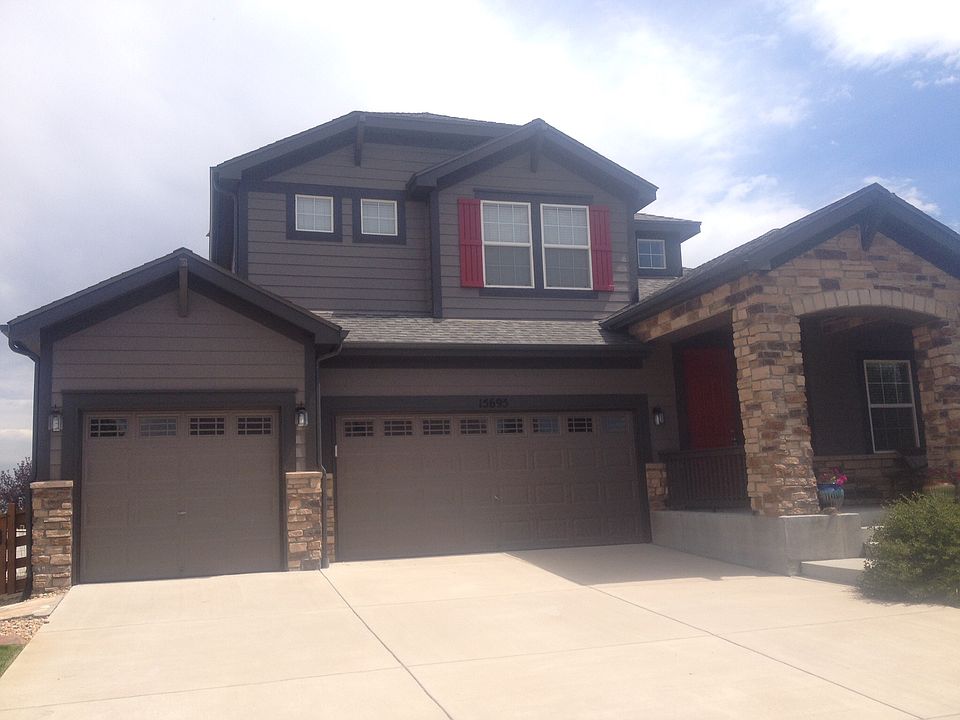 Beautiful Reunion home in Back Nine neighborhood. Corner lot. Over $100K in upgrades. Stone finish on 3 sides exterior. 4 bedrooms on upper level (2 master suites and two additional bedrooms with shared double sink bath). Finished basement space for use as bedroom, playroom or rec room. Large study with beautiful after-market built in wall of cherry bookshelves. 3.5 baths with high end finishes. Recently replaced high end water heater will provide plenty of water to fill your 100 gallon tub. Wide plank walnut floors. Cherry cabinets. Rare stain package on solid wood doors and trim. Travertine tile and solid surface counters (granite, quartz, Corian). Every room was uniquely designed with high-end finishes (no standard or cookie cutter finishes). Large Jetted tub in master bath. Stainless steel appliances (all included). Dramatic curved staircase with iron balusters. Custom window treatments including plantation shutters and Eddie Bower wood blinds. Built in cherry shelves and 50 inch Samsung flat screen in family room included. Deck off master bedroom. Views of mountains and Buffalo Run Golf Course. Across street from 2005 Parade of Homes. Professional landscaping with 9 sprinkler zones. Perfect home for a growing family!