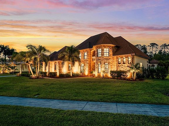 Discover this completely renovated Castle-style estate featuring 4 bedrooms, 4.5 baths, plus a spacious den, all nestled on an oversized premium lot. This extraordinary residence offers a seamless blend of luxury, comfort, and resort-style living with preserve views. The backyard is a true tropical oasis, showcasing a custom oversized pool with multiple waterfalls, a heated spa, and a beautifully designed outdoor kitchen and grill area—perfect for entertaining. An outdoor full bathroom provides added convenience for poolside gatherings. Inside, the home features tile and wood flooring throughout, a large open gourmet kitchen with high-end finishes, and a first-floor primary suite offering privacy and comfort. The architectural details and thoughtful layout create an inviting atmosphere with plenty of natural light. Additional highlights include a stone-coated metal roof, spacious living areas, and an oversized den ideal for an office, gym, or media room. This rare offering combines elegance, quality craftsmanship, and resort-style amenities—truly a one-of-a-kind property. Easy access to the gate and clubhouse. Mandatory equity membership fee of $115,000 due at closing.