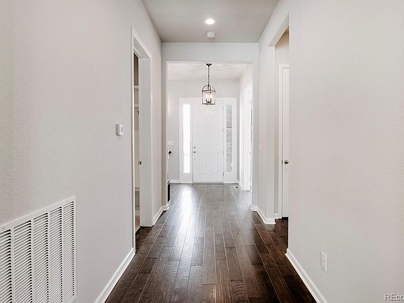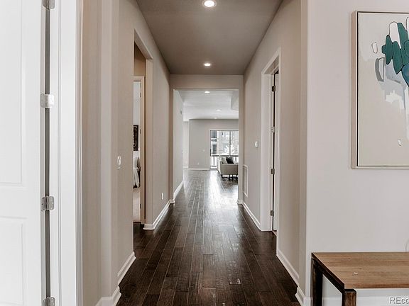Highly sought after Anthem Ranch, 55 + neighborhood with 48 miles of trails, over 100 clubs and 30,000 sq ft rec center including indoor and outdoor pools, a state of the art fitness center, tennis and pickleball courts, meeting rooms and outdoor spaces perfect for hosting summer events and concerts. This Bancroft model home boasts over 2400 finished sq ft with an unfinished basement with over 1100 sq ft and a 3 CAR GARAGE! Only 2 years old and barely lived in with a plethora of upgrades. Wide Plank maple floors, designer lighting and fixtures, custom Hunter Douglas window coverings. The chef's kitchen is beautifully appointed with top of the line Stainless KitchenAid appliances, 5-burner gas range & hood, pantry,built in microwave and large granite island overlooking the spacious great room with gas fireplace. The elegant master suite offers dual walk-in closets, large soaking tub, shower with seat and matching vanities. Enjoy sunrises and sunsets from the covered front and back patios. Set on a premium Estate lot backing to greenbelt. Come see this one of a a kind Bancroft Model with 3 car garage. Stackable Colorado Doors. Motivated seller!