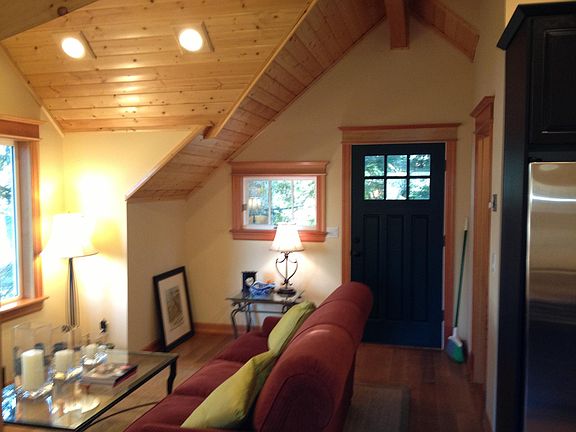 "The Birdhouse" is a newly built apartment on top of the property owners remodeled garage. It is a waterfront property nestled between the trees on Kicket Bay. It was built by the homeowner who has been a custom homebuilder for 35 years. The quality, craftsmanship, and charm make this apartment feel like home. The oak floors, knotty pine paneled ceiling, and marble countertops give The Birdhouse tremendous character. There is easy beach access and the westward facing view provides beautiful sunsets rain or shine. The view provides an expansive look at Whidbey, Skagit, Hope, and Kicket Island. The property owner is seeking one tenant. Inquire directly about pets. Available for $1500 all in with furnishings. Must provide proof of income. Please contact the property owner, Ken Youch, at (425) 351-7492 if you are interested. Utilities included in rent price. Lease is ongoing so it does not have to end after 1 year.