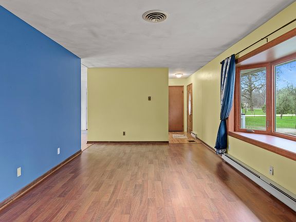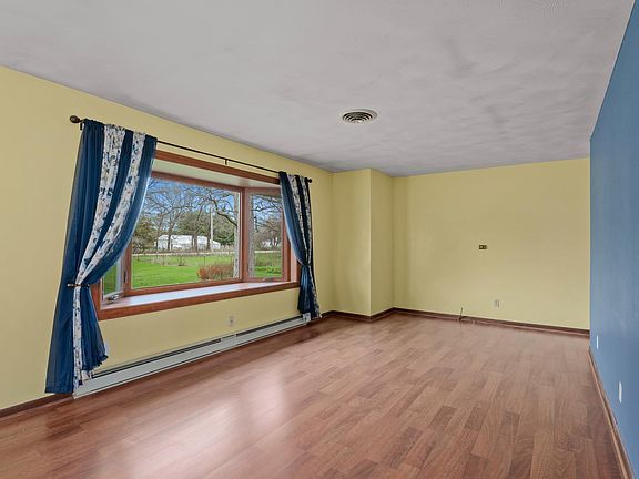 Charming ranch home on 6.59 ACRES! This home features 3 bedrooms and a non conforming, 4th bedroom in the basement. Lovely hardwood floors throughout the main level. The home has a nice wood burning stove to provide heat, in addition to the electrical baseboards. The living room features a large bay window that provides natural light. The informal dining room has a gorgeous view of the farm land behind the home. Through the sliding door to the deck, you are able to view the acreage and the beautiful birds and other wildlife. The property features a barn and 2 sheds, as well as mature trees to provide shade. This acreage also has room for a garden, animals and many other possibilities. Roof, siding, windows, and central air updated in 2013. All appliances stay. The house has been determined to not be in the flood plain, LOMA certificate available.Call Today for a private showing.