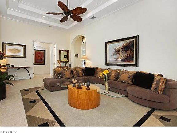 One of Audubon's newer homes & conveniently located just inside the West gate. This 3 BR, 3 BA home is situated on a private corner lot with views of the fairway & preserve. Beautifully appointed, this home features custom paint color, wallpaper treatments & faux finishes. Neutral tile & carpet, crown molding, double tray ceilings, designer lighting fixtures,ceiling fans & plantation shutters along with custom window treatments, custom Rotunda bar area exclusive to this home. The kitchen opens to the family room that offer a wood burning fireplace creating a great space for entertaining. Kitchen has been completely remodeled and is equipped with custom wood cabinets with glass display, Ceaser-stone counters, tiled back splash & knee-wall, U-line refrigerator, counter-top range & wall oven. Master Suite features lanai access, huge walk-in closet with custom closet system, new carpet, His & Hers vanities, soaking tub & walk-in shower. Two guest bedrooms & baths, new washer & dryer, spacious lanai with complete outdoor kitchen, spectacular pool with fountain & tons of entertaining space.