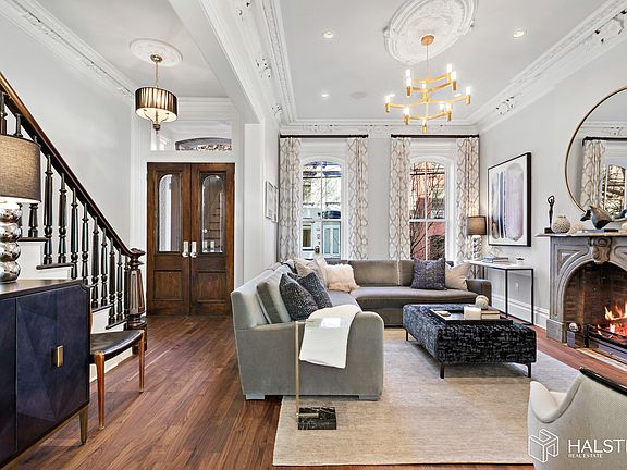 *3,000 SqFt does not include Cellar* Presenting the quintessential townhouse, lovingly restored to the highest standard, this five story five bedroom, 20' wide, historic turn of the century brownstone townhouse is located in one of Hoboken's most desirable neighborhoods and exemplifies the seamless integration of timeless modern design with the home's original historic details. 157 Tenth Street has been completely renovated, restored and reconfigured into a two family home and includes an owner's triplex, a garden level apartment and a cellar with 6' high ceilings for storage and utilities. The home has southern exposure which provides an abundance of light throughout. The current owners use the home as a one family with guest suite and family room. The exhaustive renovation included an extension over two floors with all new systems including plumbing, electrical, HVAC, radiant heat, and the restoration of the historic molding including but not limited to large decorative plaster crown molding, casing, rosettes, completely rebuilt and restored staircase and the original double entry doors. Subsequent further renovations included complete gutting of the second floor including the master bath, the addition of a walk-in closet in the master suite with pocket doors and the addition of a separate multipurpose area currently used as an exercise room. The renovation also included a new kitchen island, refinished custom cabinetry, quartz countertops, quartz slab backsplash, Wolf Range, Bosch triple rack dishwasher, custom Vent-a-Hood range hood, custom marble sink in the powder room, hardwood floor refinishing, terrace off the master bedroom rebuilt with new Ipe decking, privacy fence and railing, the installation of radiator heating on two upper floors of the house and new HVAC. With access from both the lower and parlor floors, the garden features a brick wall built with the homes own original bricks, synthetic grass, bluestone pavers, Ipe fencing and a direct gas line to the BBQ. Tucked away just a block from Washington Street this home offers an abundance of convenience with easy access to boutique shopping, restaurants, cafes and Hoboken's 14th Street NY Waterway Ferry and NJ Transit for access to Hudson Yards and Manhattan's Port Authority bus terminal and Path Train to NYC.