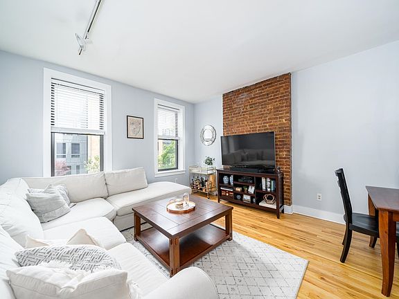 Very well laid out 695 sq. ft. 1 bedroom plus Den/1 bathroom condominium in a highly desirable uptown location. As you enter this property you are greeted with a bright and sunny LR/DR with tall windows, hardwood floors and exposed brick. Your renovated kitchen features soapstone counters, tall cabinets, stainless steel appliances and a tiled backsplash. Relax in the spa-like bathroom with a large walk in shower with glass partition, a large marble vanity and beautiful tiling throughout. The rear-facing bedroom features large windows and ample storage. The large den area is perfect for a home office, small bedroom, etc. Recently refinished hardwood floors throughout, central air and heat, onsite washer/dryer room and basement storage finish off this perfect property. Perfect uptown location near everything Hoboken has to offer. Rental parking 1 block away.