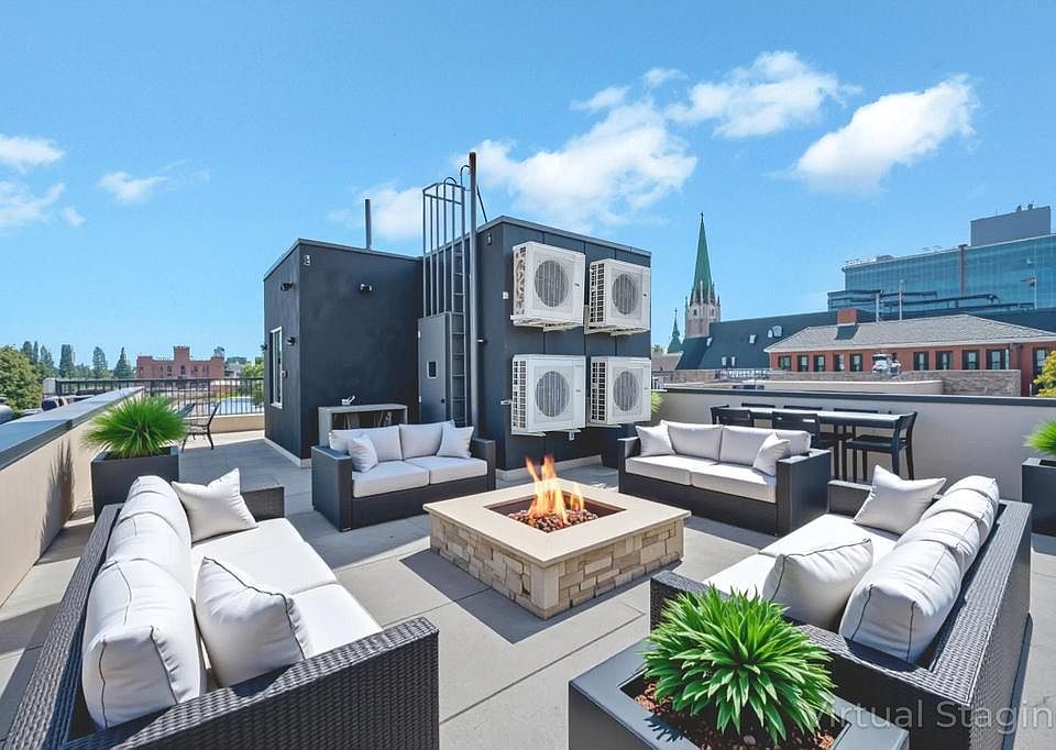 Modern fixturesHalf bath for guestsExpansive windowsBrand-new build-outOutdoor rooftop deckIn-unit washer and dryerPanoramic skyline views
