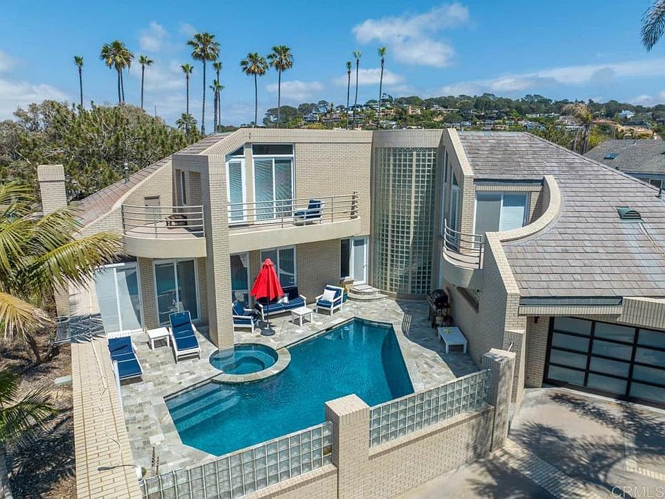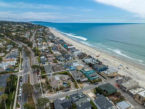 Sitting on 2 legal lots that have been have been consolodated (BASED ON THE PRICE THE AREA OF THE SECOND LOT IS FREE!), there's 4,433 SQ FT of living space. Modern Contemporary Styling, with ocean/sunset/white water views, 5BR/6BA, located in the Beach Colony west of Camino Del Mar just about 200 feet to the oceanfront, with direct beach access. Includes a 1BR/1BA guest suite or granny flat with its own separate 1 car garage. The open floor plan with Chef's kitchen is well designed for those get togethers with family and friends. The primary suite is separate and oh so romantic with white water surf views, bath with spa-type vibe, his and hers walk in closets, and a special Juliet balcony perfect for sun bathing and enjoying the ocean breezes. Delight in the swimmig pool & spa. The two (2) car garage is attached to the main house with 3 extra parking spaces which creates plenty of offstreet parking. This property is a true Del Mar beach compound. HERE'S THE BEST PART: We are in the oceanfront business and this one is truly a rare find, better hurry! Come & enjoy the Del Mar Beach Lifestyle! Won't Last!