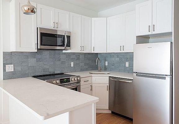 Spacious Recently Renovated 2-bedroom/2-bathroom With Open Kitchen and In-Home Washer/Dryer in Prime North Slope This third floor apartment offers flexible arrangement possibilities and two large split bedrooms. The centrally located living space includes a fully appointed kitchen with a suite of full-size stainless appliances and Caesarstone countertops. A peninsula with breakfast bar expands the counter space and dining area options, supplements the kitchen storage, and puts the kitchen in conversation with the open living room. There are two large bedrooms, each with ample closet space. Two modern bathrooms, one with a soaking tub and stackable washer/dryer, is adjacent to the rear bedroom. The second full bathroom features a stall shower and plenty more vanity/medicine cabinet storage. Modern amenities in this fully renovated apartment include an in-unit stackable washer/dryer, fully appointed kitchen, and recessed lighting. Having recently undergone a complete modernization, the common areas have been updated and the building has been equipped with the Latch keyless security system, allowing residents to securely and remotely manage access. A full-time managing agent is professional and responsive, providing an online portal for rent payment and maintenance requests, as well as a dedicated superintendent. Subway stations nearby include the R-train at Union Street, along with the B, D, N, Q, R, 2, 3, 4 and 5-trains at Atlantic Avenue-Barclays Center. Enjoy outdoor dining or takeout from great local eateries on 5th and 7th Avenues like Katsuei, Bogota, Negril, Alchemy, Stone Park Cafe, Calexico, and al di la Trattoria. The main entrance to Prospect Park, home of the Grand Army Plaza Greenmarket (every Saturday, year-round), is just a short trip away. Please note that photos of the kitchen and bathrooms are of the actual apartment. Staged photos are of a similar unit in the building.