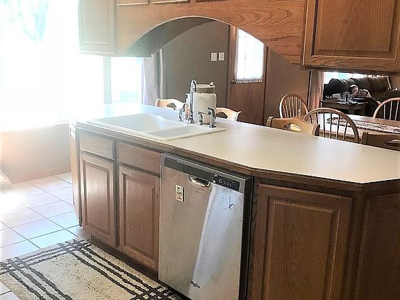 Edge of town ranch/berm home featuring large living room open to dining area & kitchen with island that seats four, 3 bedrooms, 2 baths including incredible master bath with cathedral ceiling, garden tub, shower, & lots of cabinetry, large backyard with lots of mature trees, attached 2-car garage, & 2 storage buildings.