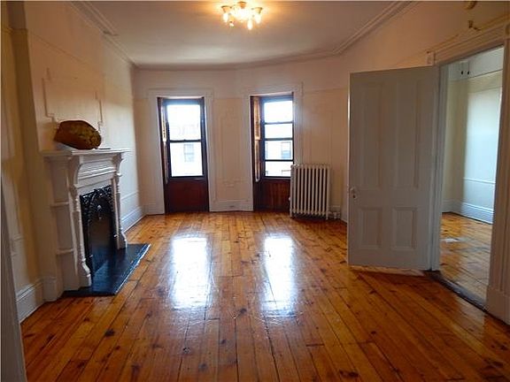 LOW FEE This Massive North slope apartment 3 bedrooms 1 bath is located in a Brown Stone building near prospect park with great views. Featuring all the original details Exposed Brick living room centered by a beautiful fire mantle, white tin ceiling painted in white with lots of details and is across from the spacious dinning area with windows. Two of the bedrooms has exposed brick and can accommodate queen size beds and the smaller bedroom fits a full. The eating kitchen can seat four easily with beautiful white cabinets and quality appliances. This apartment is well centered, near to the Food coop, Back to the land, Key food, Star Bucks. Close to all connecting trains into manhattan and close walking to the F if needed. There are numerous restaurants, bars and other boutique coffee shops to choose from. Heat and Hot water included.