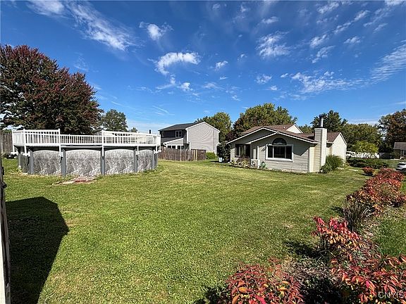 Absolutely stunning! Town of Geddes 3Bdrm 1.5Ba updated Split will delight you the minute you step inside. Nothing cookie cutter about this home- with cathedral ceilings, crown moldings, recessed lighting, gorgeous addition with wood burning fireplace. Open floor plan includes updated kitchen with granite counters, stainless appliances, center island and breakfast bar. Formal dining room, Two sets of sliders off living room step out to Florida room and Trex deck. Lower levels add even more living space: family room, office, and laundry room. New roof, windows, and above ground pool. Yard is extra deep with raised bed gardens, patio, and lush landscaping. Ideal location- close to neighborhood park, schools, library and quick access to highway for your morning commute. SOLVAY Electric= affordable utility bills. Move in ready- this IS THE ONE you have been waiting for.