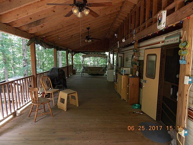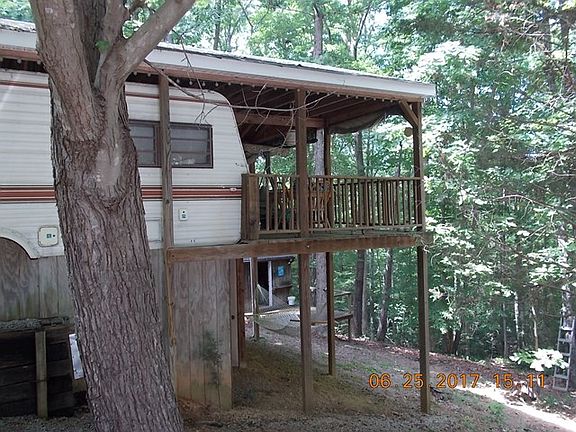 Lake life with a minimal investment! Start enjoying all that Lake Gaston has to offer for less than $25,000! River Ridge offers golf, swimming pool, lake access & many other activities & amenities!! Easy access to I-85 for convenient lake getaways from just about anywhere! This 35 foot camper offers sleeping for at least 4, more if you get creative! The bath has been upgraded to feature a full size shower & toilet. Gas stove, large fridge, electric heater, window A/C & most furnishings convey! You won't spend much time indoors after you experience the huge 40 foot covered, wrap-around porch. Enjoy peaceful morning coffee, evening drinks & everyday cookouts overlooking the large double lot and wooded area (no neighbors behind you). PLUS abundant storage under the porch, storage/utility room under the unit, fire pit, storage building, yard swing. New subfloor & floor coverings. Must See!!