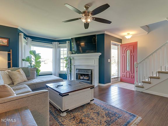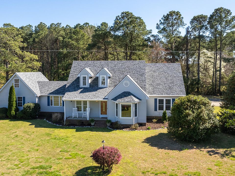 Adorable, cape cod, located in the heart of Grandy NC on over an acre with no HOA! Welcome home to 157 Augusta Drive, This 4 bedroom 3 full bathroom home has an ADORABLE kitchen with a tongue and grove ceiling, the cabinet organization of your dreams, Stainless Steel Appliances, and a farm sink! Beautiful bamboo flooring and a den with a fireplace. Downstairs primary bedroom with an updated en-suite bathroom- large walk-in shower with double shower head, tile floor, and massive walk-in cedar closet. Off the kitchen is a large utility room, 2nd bedroom, a full bathroom, and 'flex' space perfect for a dining room or office. Upstairs there is 2 bedrooms, a full bathroom, and a finished room over the garage! SOOO much attic space for storage, an attached garage, and a large shed in the backyard!
