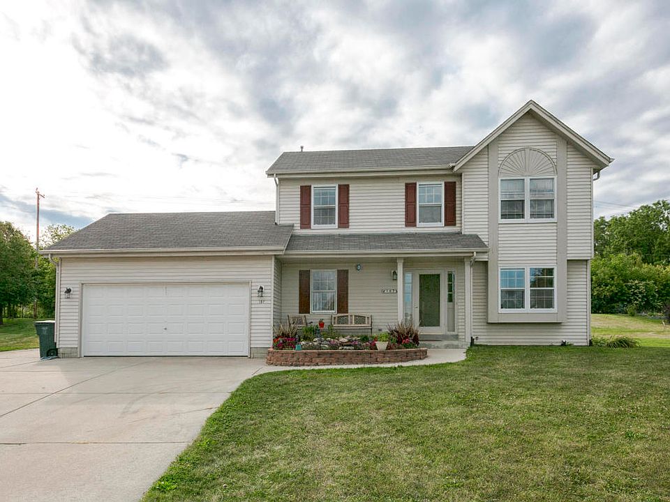 This beautiful well maintained 2-story home offers a spacious and open concept floor plan, generous storage, 1st floor laundry, large kitchen and lots of cabinet space. Kitchen has planning desk, pantry and includes appliances. Upper boasts master bedroom suite, whirlpool tub & walk in closet. Enjoy separate computer nook also perfect for relaxing and watching the stars. Basement partially finished, great for making it your own. Cement driveway + side apron for more parking. Great patio & magnificent backyard!