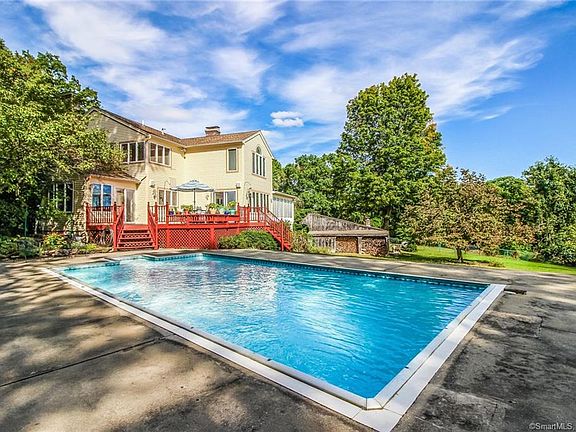 On a Desirable Brooklyn Road Located on desirable Barrett Hill Road, known to all for its lovely homes, this 1989 Colonial home has 3298 SF sprawled on two floors. Privately set back from the road on 2.10 acres and enjoying views of the valley from the 3-season sunroom. There is a circular drive to the front door set amidst the professionally landscaped yard, in the back yard is an 36x18 inground swimming pool and the southerly facing deck off the kitchen from which to enjoy the views and sounds of the birds and leaves wrestling in the trees. Inside is a recently remodeled kitchen with granite countertops, a tile floor and an island cooktop with hood, a wet bar and a breakfast nook, also with great views! The dining room and forma living room both have fireplaces, on the first floor is family room with cherry floors, fireplace and access to the deck as well as the 3-season sunroom. Upstairs are 4 bedrooms including a master suite, one of which has been remodeled into a wonderful study with built-in bookcases and desk! For the practical minded there is Kohler generator, a garage under and a detached 3-car garage.