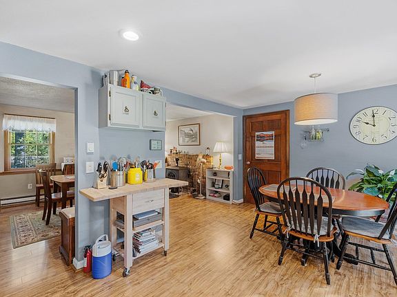 Location, location, location! This spacious three-bedroom, two bath colonial is located on a beautiful corner lot surrounded by trees and stone walls. Just minutes away from Route 93 and shopping, yet it offers the tranquility of a rural setting. Spacious kitchen with oak cabinets and eat in dining area. Step outside through the glass sliders, and you'll find yourself on the inviting back deck/patio, perfect for those summer BBQs and relaxation. The living room boasts a charming brick hearth and woodstove. Large family features elegant details like chair rail, solid wood doors, and crown molding. Double glass doors to the first floor "bonus room" which could be used as a bedroom. First floor full bath. Large breezeway provides first floor laundry and room for storage. Second floor consists of a spacious primary bedroom with a walk-in closet and a full bath. Two more generously sized bedrooms with ample space. Attached two car garage. Perfect yard for any outside games/gardens or simply to enjoy! Beautiful perennials and level/gently sloping yard, fenced in-ground pool with patio area and pool house/shed. This is an amazing home for entertaining and will not last long!