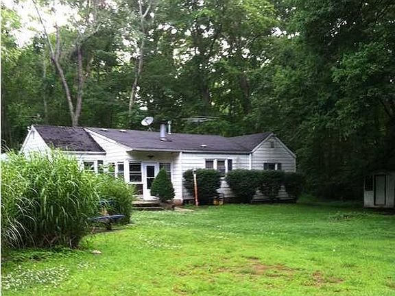Build your dream home here! 2.3 acres set back from road. New pole barn in back...an in ground pool that has been covered for many years...dog run for those with pets...this area is serviced by well and septic, and would be part of construction costs as system is older....current home is in need of total rehab, or tear down...this is all about the land, surrounded by trees with easy access to major roadways.