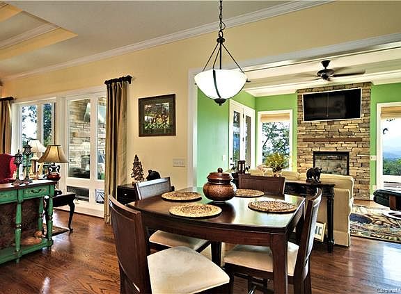 Amazing custom home with wonderful mountain views! Loads of upgrades include built-ins, tray ceilings and 2X6 construction. Sunroom and Screened porch face Chimney Rock into the Hickory Nut Gorge! Much attention to details: Open floor plan with split bedrooms, Great Room with tray ceiling. HUGE master bedroom with tray ceiling and BIG closet with cedar walls. Built-in bookcases, hardwood floors . Screen porch with fireplace, Grand kitchen with granite countertops and gas cooktop has adjacent butler's pantry with walk-in pantry. Three fireplaces. Oversized double garage with workshop. Comfortable and elegant, perfect floor plan. Nice landscaping. Like new: ready to move into.