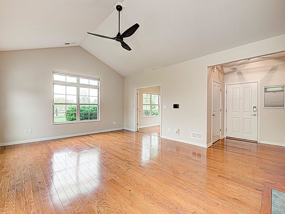 Brand new HVAC system installed on 5/28! This is low maintenance living at its finest. This updated condo has a ton to offer. Open space with tons of natural light. Gorgeous hardwood floors that have been wonderfully maintained. A pond and scenic pasture view off the back patio. A custom kitchen with beautiful rough black granite counter tops. Newer appliances. Primary suite with a walk in shower. Large office that also has a pond view. The neighborhood boasts a pool and a fitness center for your enjoyment.