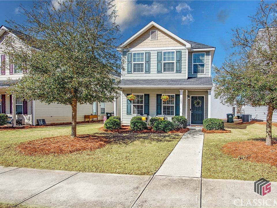 Welcome to this delightful 3-bedroom, 2.5-bath home in the sought-after Lantern Walk community in Athens! Step onto the inviting covered front porch, perfect for morning coffee or evening relaxation. inside, you'll find a spacious living room that seamlessly connects to the kitchen, creating an open and welcoming atmosphere. The kitchen features plenty of counter space, modern appliances, and a sleek stainless steel refrigerator, making meal prep a breeze. Whether hosting guests or enjoying a quiet meal at home, the kitchen provides the perfect blend of functionality and style. Just off the kitchen, you’ll find a convenient half bath and a dedicated laundry room, adding to the home’s thoughtful layout. Head upstairs, where a cozy landing area offers the perfect nook for a comfy chair or reading space. The primary suite is a true retreat, boasting vaulted ceilings, a spacious walk-in closet, and an en-suite bath with dual vanities, a walk-in shower, and a generously sized linen closet for all your storage needs. Down the hall, you’ll find two additional bedrooms, each offering great natural light and closet space, as well as a second full bath. This home also includes a 2-car garage, providing ample parking and storage. Outside, enjoy all the fantastic community amenities, including a playground, pavilion, dog park, and volleyball courts—perfect for outdoor fun and socializing. Don’t miss your chance to make this wonderful house your new home—schedule your showing today!