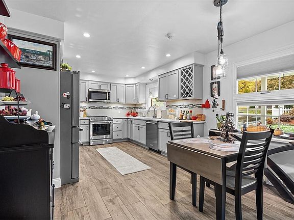Completely remodeled brick ranch ready for new owners to move right in. Outside you will be greeted by immaculate custom landscaping. Inside you will find a gorgeous kitchen with top of the line stainless steel appliances, granite countertops, and vinyl floors. Off the kitchen you will find the first floor washer & dryer. The large primary bedroom is a relaxing retreat with an en suite bathroom. In the living room you will find refinished hardwood floors and French doors connecting to the sunroom. The sunroom features a beautiful electric fireplace and is fully insulated so it can be enjoyed year round. In the back you will find a fenced in area for the dogs and a huge flat yard with a shed for all your outdoor storage needs. The enormous basement is partially finished with a full bath leaving plenty of room for an entertaining space and potential for an additional bedroom. Owner is also including the lawnmower, snowblower, landscaping tools, etc so this home is fully equipped.