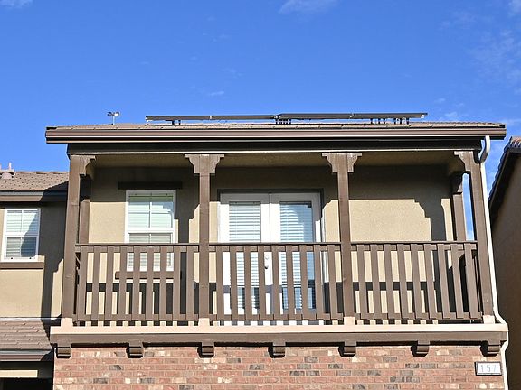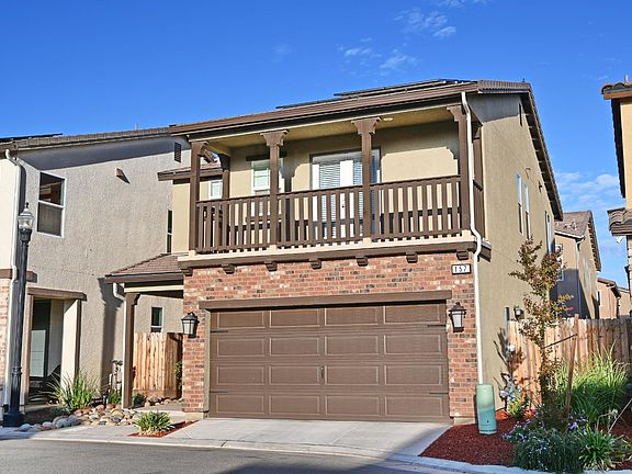 From the moment you arrive, this home makes a statement with its modern design, abundant natural light, and a sense of calm flow throughout. Located in the Harvest neighborhood in the award-winning Riverstone community, this two-story residence offers 3 bedrooms, 2.5 bathrooms, and approximately 1,512 square feet of thoughtfully laid out space.Step inside to find a bright, open living and dining area that leads naturally into the kitchen. The kitchen features granite countertops, stainless steel appliances, a gas cooktop, wall oven and microwave, a large island with bar seating, pendant lighting, and generous cabinetry. Tile flooring on the main level adds both elegance and easy care. A guest powder room on this floor offers added convenience.Upstairs, the primary suite is oversized and includes a private balcony creating a quiet retreat where you can unwind. The en suite bathroom offers dual sinks, a soaking tub, walk-in shower, and plenty of storage space. Two well-proportioned secondary bedrooms share a full bathroom, also with dual sinks. The laundry area is also located upstairs to keep day-to-day life efficient.The home comes equipped with solar panels, central heating and cooling, and an attached two-car garage. Outside, you'll appreciate the covered patio and paths in the yard which is designed for low maintenance so you can spend more time enjoying, not managing.Riverstone is a master-planned community spanning about 2,000 acres and is recognized for excellence. It includes parks, trails, open space, a community lodge with resort-style pools, a fitness center, gathering areas, and monthly resident events. Riverwalk, the community's retail and social hub, brings convenient dining and shopping options right to your doorstep.This home balances comfort, style, and efficiency with a layout and features that appeal to everyday needs and elevated living.