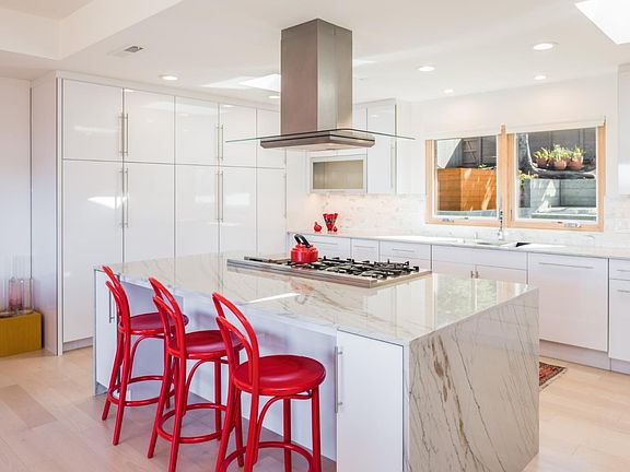 - Kitchen: Oven Range - Built-In, Garbage Disposal, Dishwasher, Hookups - Gas, Oven - Self Cleaning, 220 Volt Outlet, Pantry, Island, Exhaust Fan, Hood Over Range, Oven - Double, Refrigerator, Skylight, Countertop - Quartz