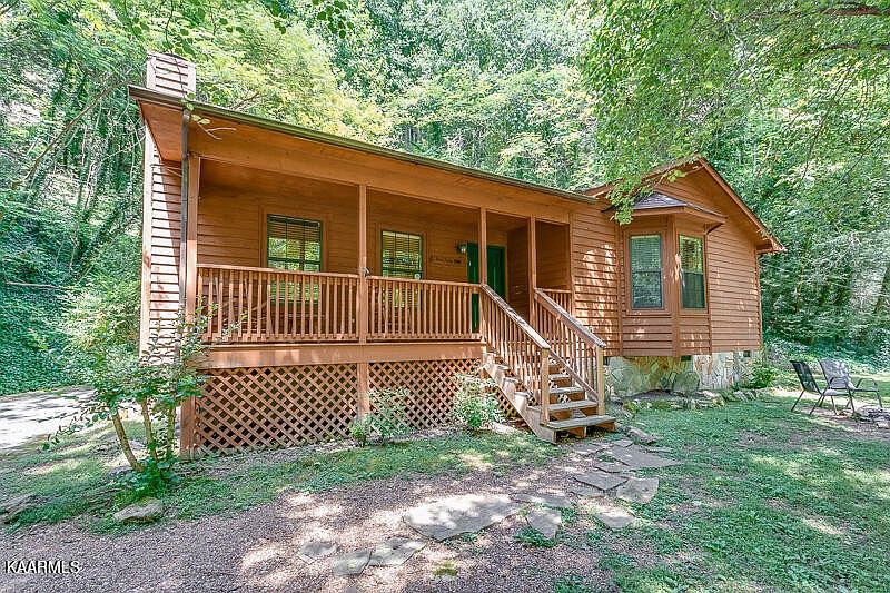 This beautiful well-maintained cabin is in the private and secluded gated community of Black Bear Hollow on 5 acres of land located in Townsend. The cabin has been well established on an overnight rental program and did over $67K in Gross Revenue in 2021. Come and enjoy this one-of-a-kind setting that has only 7 cabins within the community and offers privacy with a wooded scenery backdrop and abundant wildlife. Located only 5 miles from the Smoky National Park Entrance, 15-20 minutes to Cade Cove, 15 minutes to Pigeon Forge, and only 20 minutes to Gatlinburg. The cabin has a cozy floor plan from the large open kitchen with SS appliances to the relaxing living room with wood burning fireplace.You will also get to the enjoy the quiet back deck that is wrapped with wooded trees while you entertain or unwind in the hot tub, or you can sit on the front porch and get lost in the serene sounds of the wet weather creek that is located adjacent to the cabin. Plenty of Parking available. https://www.vacasa.com/unit/74312. Drone Photography used on some photos.