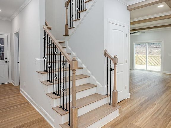 Look no further! This newly constructed home comes with thoughtful upgrades and features throughout! Enjoy a spacious front porch, hardwood flooring throughout - no carpet and smooth ceilings! The upgraded lighting package enhances the beauty of the home, along with a striking wrought iron staircase and an elegant two-story chandelier. The gourmet kitchen is a chef's dream, equipped with stainless steel appliances, granite countertops, abundant counter space, large island for bar seating and stylish backsplash. It opens to the large great room, featuring a beautiful tiled fireplace, detailed wood molding, built-in bookshelves and beams, All bedrooms are fitting with ceiling fans and remote controls. The main floor primary bedroom boasts and impressive and oversized tile shower, separate garden tub, double vanity sinks and walk-in closet. All closets feature wood shelving! Upstairs, you'll find three additional bedrooms. Spacious walk-in laundry room with ample storage on the main, plus coat closet and powder room for convenience. 2 car garage, a large deck overlooking your private backyard, grass seeding front/back included & wood fence, this home truly has it all! Blinds included. Ready to close. Disclaimer: CMLS has not reviewed and, therefore, does not endorse vendors who may appear in listings.