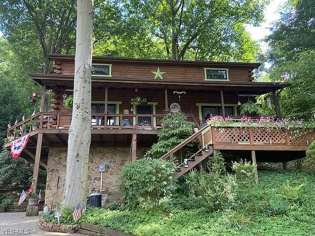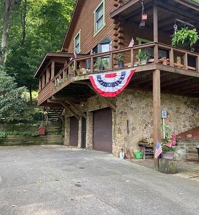 This custom-built Dutchcraft log home with a lake view is a true one-of-a-kind and a perfect retreat. The exterior 8 x 6 tongue and groove logs with insulation and ten-inch thick foundation walls make this a very sturdy home. It has gorgeous wood paneled walls and ceilings upstairs and a cozy living room with a fireplace on the main floor. The bay window in the dining room provides lovely light. The master bedroom boasts a vaulted ceiling. There is plenty of storage throughout the house and in the generous heated and cooled two-car garage. There is also a workshop in the lower level that could be converted to a gym. New furnace and central air unit (2019) keep the main floor the perfect temperature, with baseboard heating and a window unit on the second floor. Roof and gutters were replaced in 2019, as well.